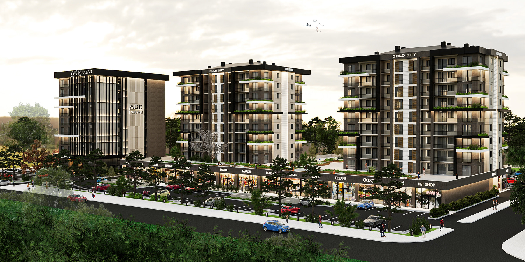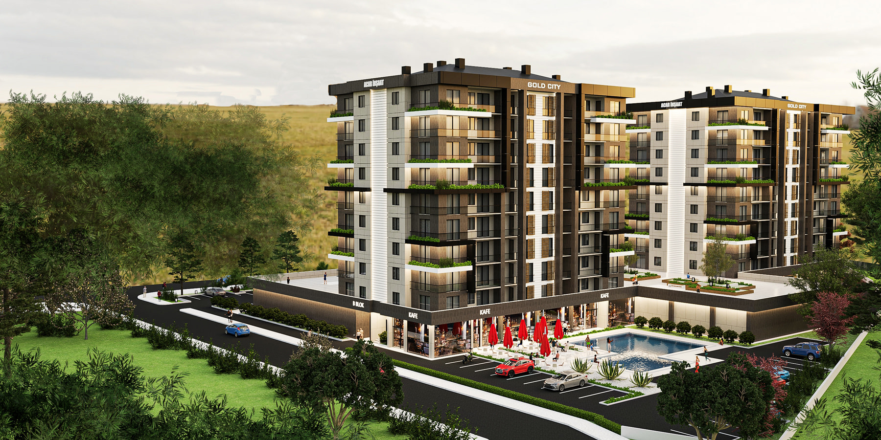 Gold City, konutları, ofisleri, mağazaları ve her detayı düşünülmüş tasarımıyla, bölgeye yepyeni bir yaşam konsepti getiriyor.
